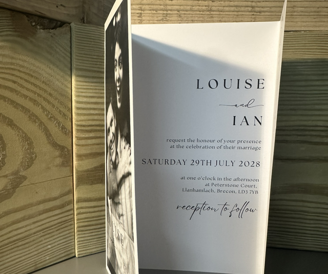 Black and white monochrome photograph design - Gatefold Wedding invitation