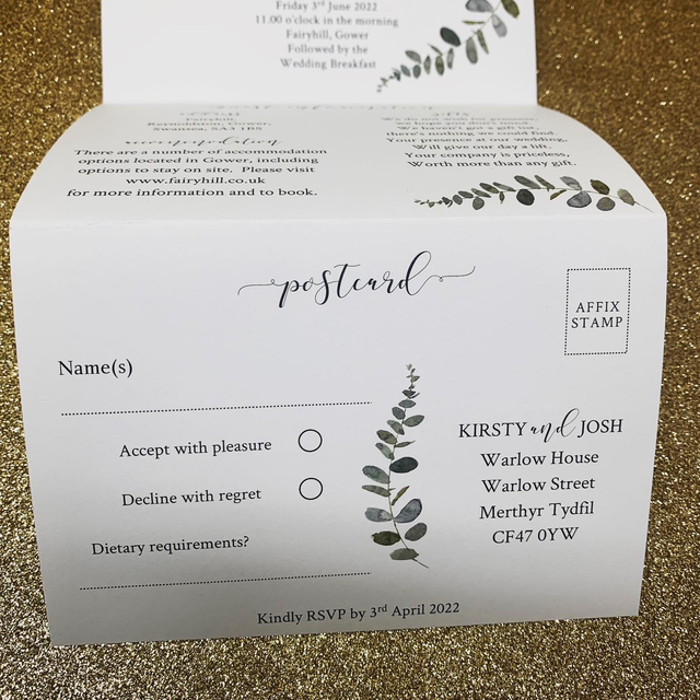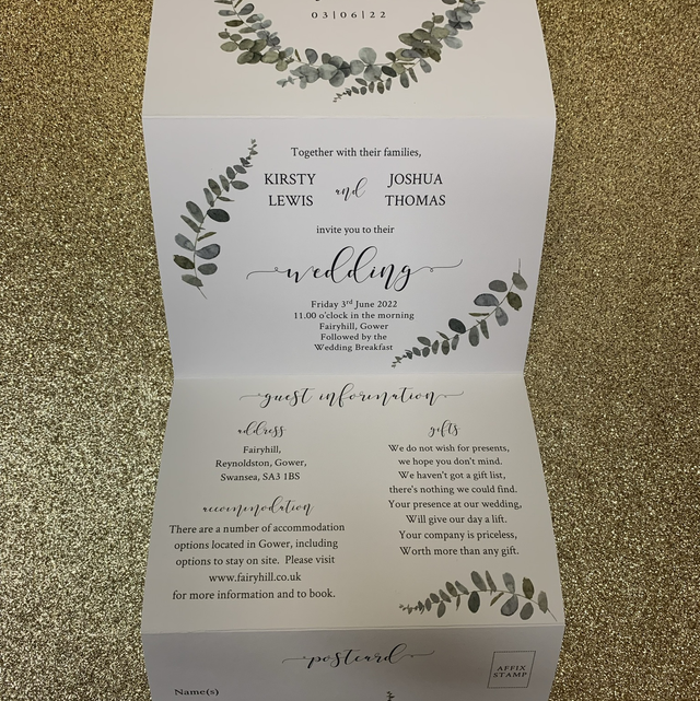 Eucalyptus - concertina Wedding invitations - including guest information & RSVP
