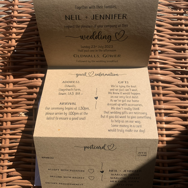 Kraft brown “we do” rustic minimal design - concertina wedding invitations - including guest information & tear off RSVP postcard