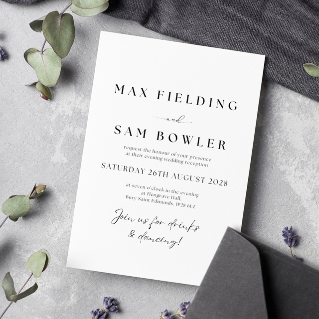 Modern minimal design A6 evening invitations - monochrome sleek minimalist design