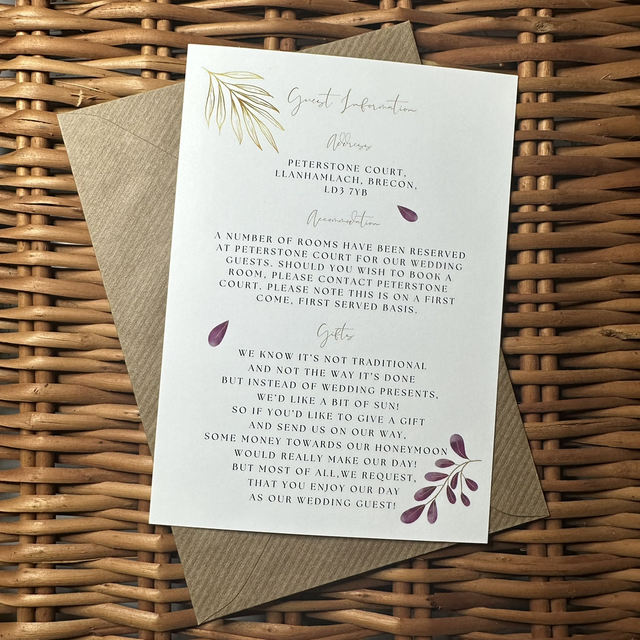 Each invitation is approximately A6 size (105x148mm) and supplied with envelopes (choose from white or Kraft brown)