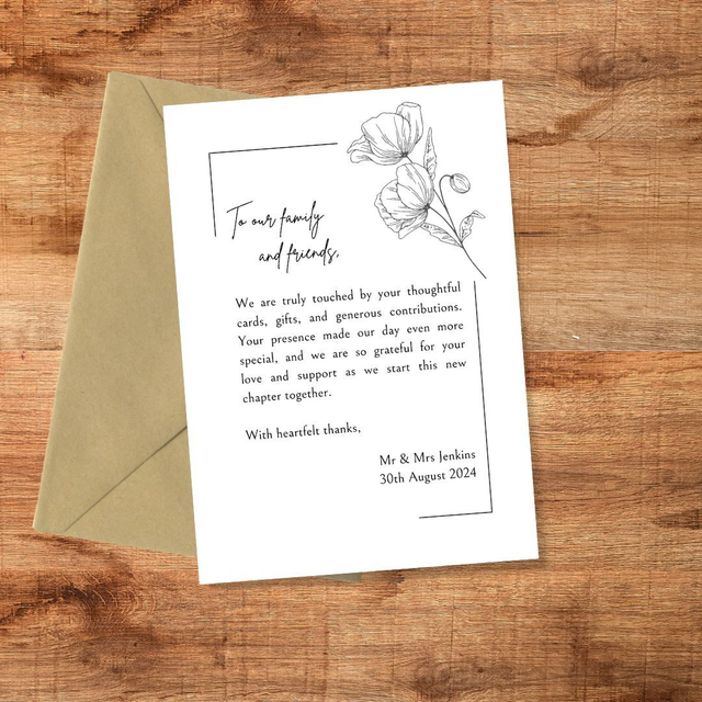 Each thank you card is approximately A6 size (105x148mm) and supplied with envelopes (choose from white or Kraft brown)