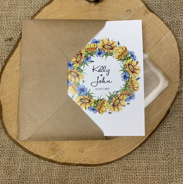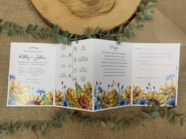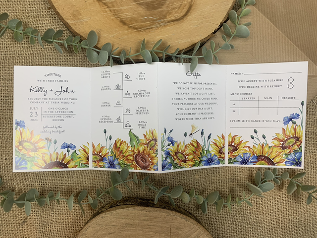 Sunflower & cornflower design - concertina Wedding invitations - including guest information & RSVP